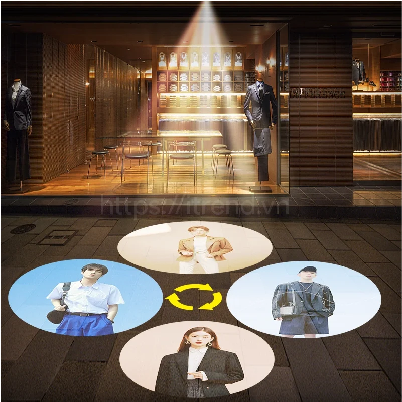 Nhờ vậy, doanh nghiệp có thể luân phiên trình chiếu nhiều logo hoặc hình ảnh quảng cáo mà không cần thay đèn.