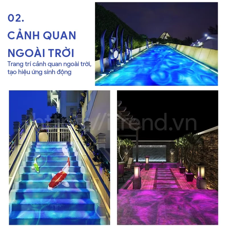 - Hiệu ứng ánh sáng sóng nước động mềm mại, thu hút.